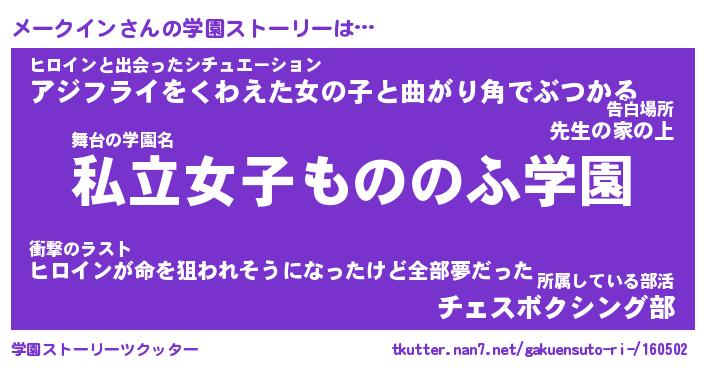 | ヒーロー風カッコイイあだ名 | 『スーパーメークイン』『天弓騎士メー』 |