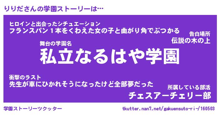 | 女子向けラノベタイトル風あだ名 | 『りりだ姫と円卓の騎士』 |