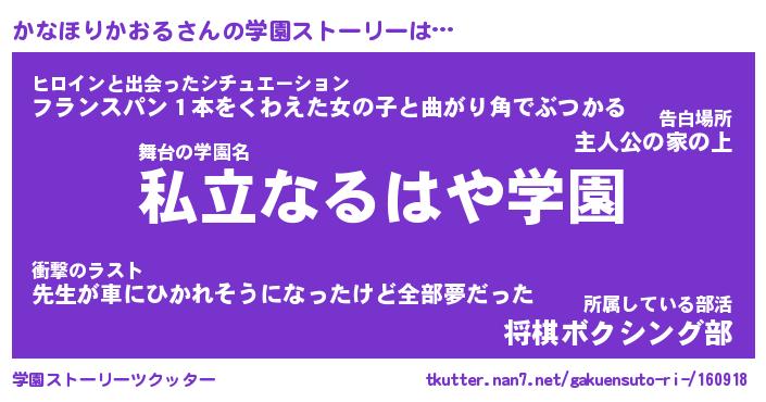| 女子向けラノベタイトル風あだ名 | 『(仮)かなほりかおるのやんごとなき事情』 |