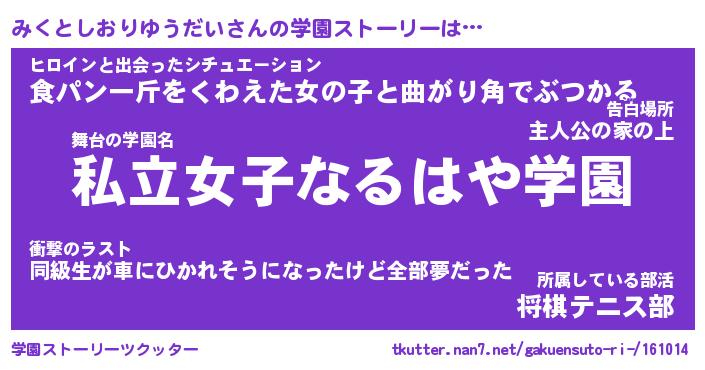 | 肩書あだ名 | 『みくとしおりゆうだい御曹司』 |