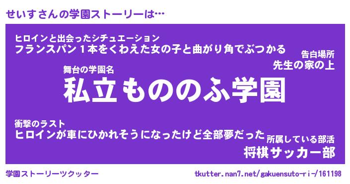 | 男性向けラノベタイトル風あだ名 | 『せいすの憂鬱』 |