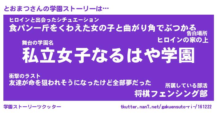 | 胡散臭い通販商品みたいなあだ名 | 『億万長者になれる霊験あらたかなお札…その名も「とおまつ」』 |