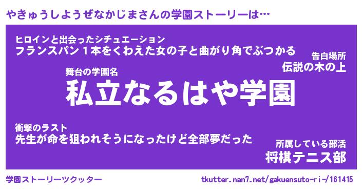 | 男性向けラノベタイトル風あだ名 | 『やきゅうしようぜなかじまの憂鬱』 |