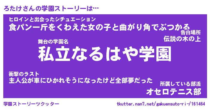 | 女子向けラノベタイトル風あだ名 | 『ろたけ姫と円卓の騎士』 |