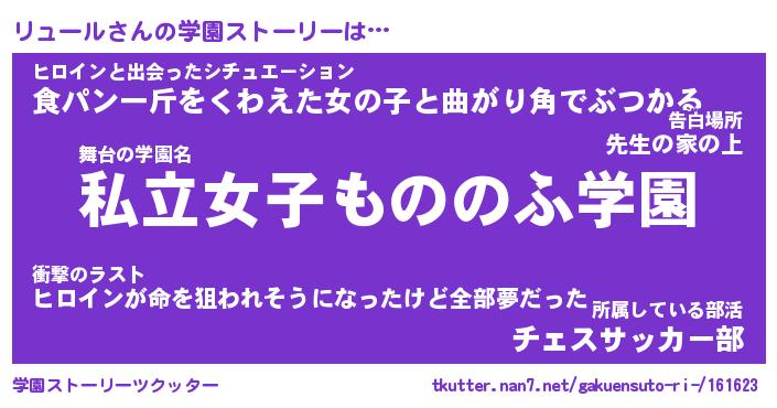 | ファンタジー風あだ名 | 『リュフェル』『エターナルリュールー』 |