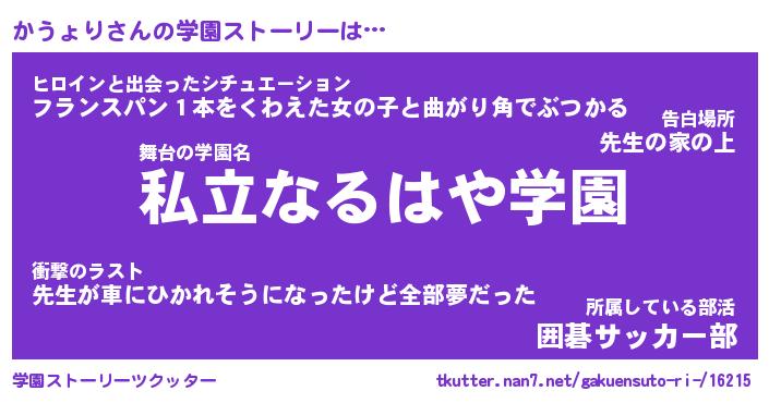 | 告白場所 先生の家の上 …「ふぃぎゅこ」 | 2月17日 06:24 |