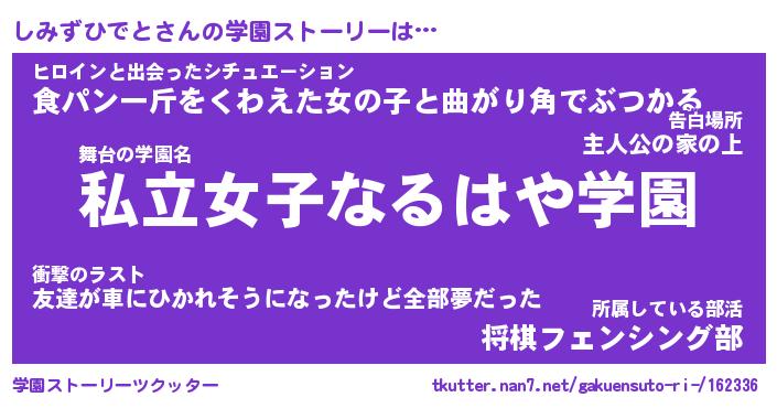 | 女子向けラノベタイトル風あだ名 | 『誰かこのしみずひでとを説明してください! ~契約から始まるウェディング~』 |