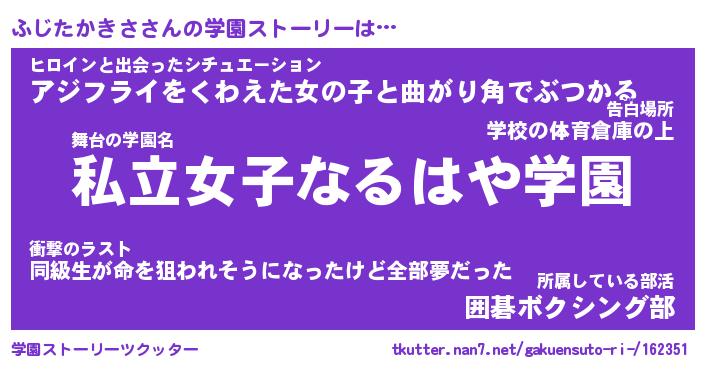 | 女子向けラノベタイトル風あだ名 | 『誰かこのふじたかきさを説明してください! ~契約から始まるウェディング~』 |