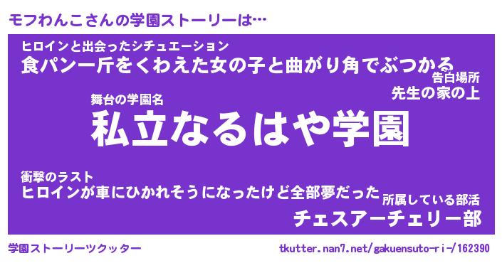 | 伝説のあだ名 | 『伝説のスナイパーモフわんこ』 |
