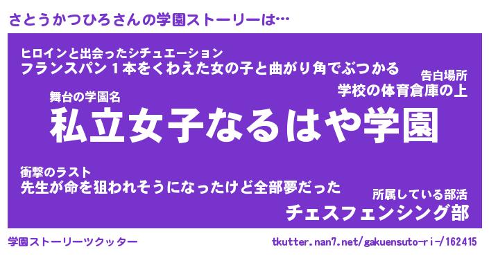 | 伝説のあだ名 | 『封印されしスナイパーさとうかつひろ』 |