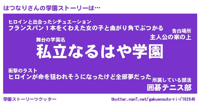 | ヒーロー風カッコイイあだ名 | 『スーパーハツナリ』『幻影騎士ハツ』 |