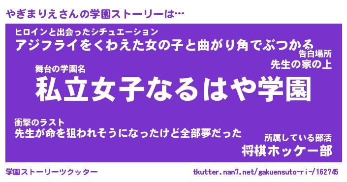 | 肩書あだ名 | 『やぎまりえ御曹司』『やぎまりえ副担任』 |
