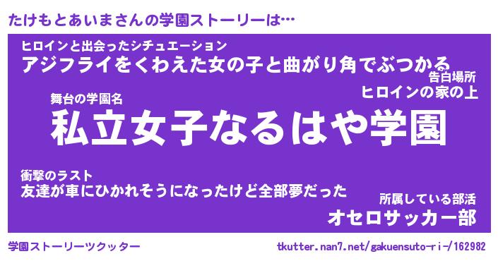 | 伝説のあだ名 | 『封印されしスナイパーたけもとあいま』 |