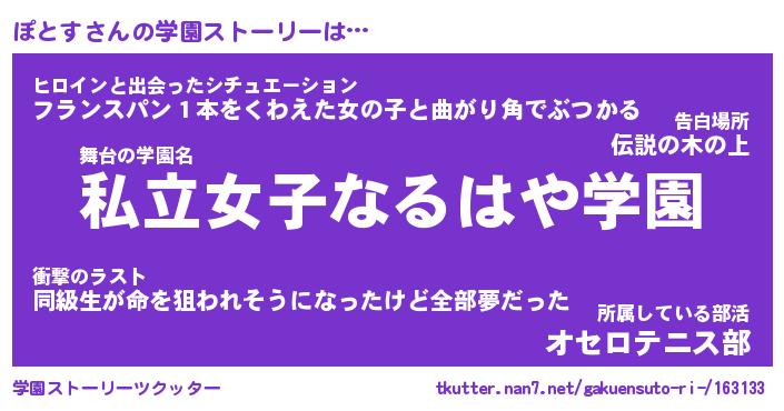 | ヘコむあだ名 | 『ぽともー』『豆乳』『ぽとぷりん』 |