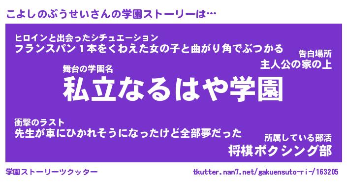 | 伝説のあだ名 | 『不死鳥のスナイパーこよしのぶうせい』 |