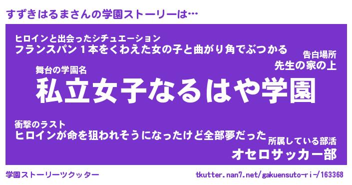 | 女子向けラノベタイトル風あだ名 | 『誰かこのすずきはるまを説明してください! ~契約から始まるウェディング~』 |