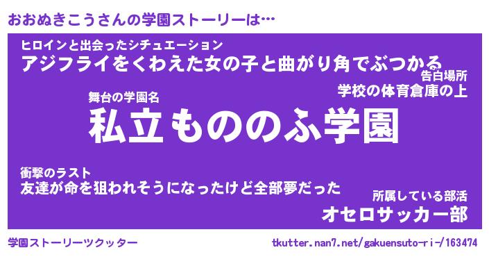 | 男性向けラノベタイトル風あだ名 | 『おおぬきこうの憂鬱』 |