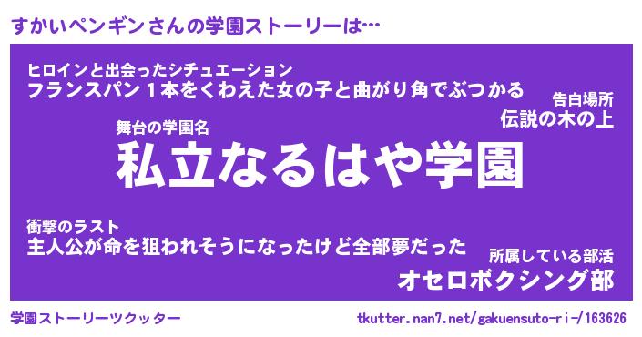 | 伝説のあだ名 | 『伝説のスナイパーすかいペンギン』 |