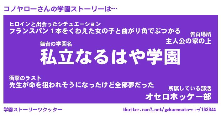 | ファンタジー風あだ名 | 『コノフェル』『エターナルコノヤローー』 |