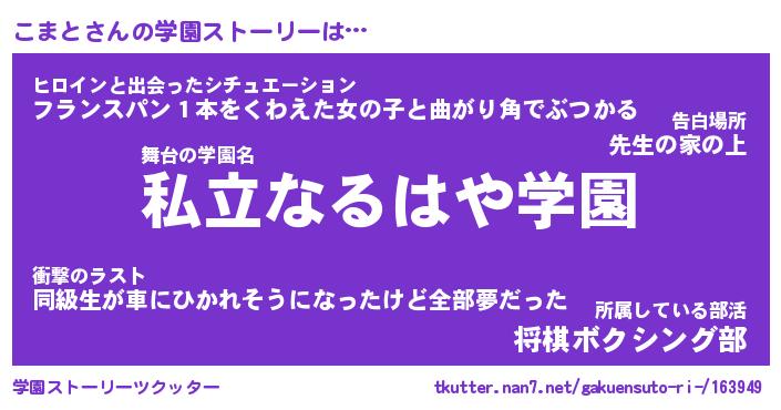| 男性向けラノベタイトル風あだ名 | 『こまとの憂鬱』 |