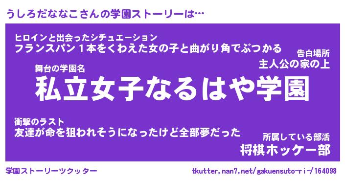 | 女子向けラノベタイトル風あだ名 | 『誰かこのうしろだななこを説明してください! ~契約から始まるウェディング~』 |