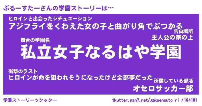 | 女子向けラノベタイトル風あだ名 | 『ぶるーすたー姫と円卓の騎士』 |
