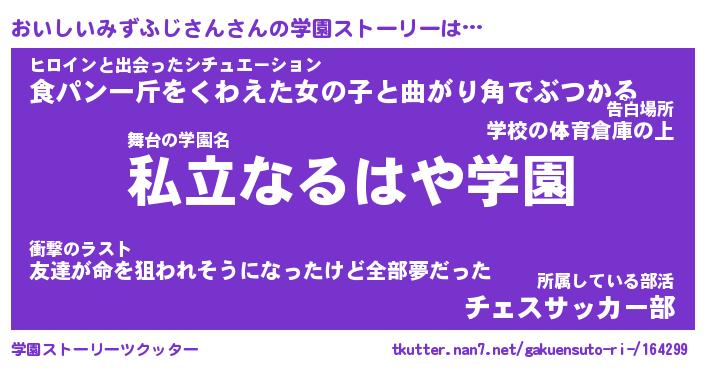 | 胡散臭い通販商品みたいなあだ名 | 『モテモテ間違いなし霊験あらたかなお札…その名も「おいしいみずふじさん」』 |