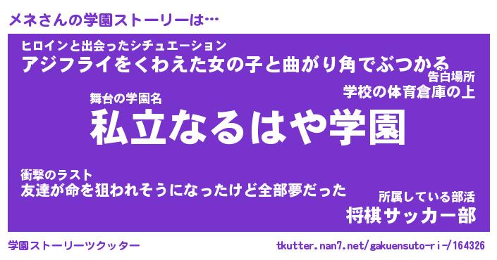 | 男性向けラノベタイトル風あだ名 | 『メネの憂鬱』 |