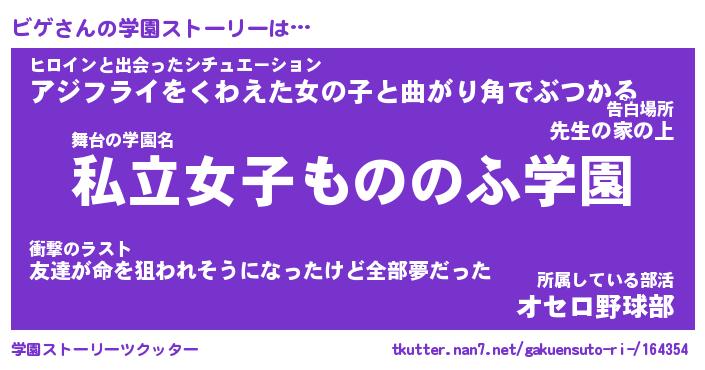 | ヘコむあだ名 | 『ビゲにー』『なまこ酢』『ビゲを』 |