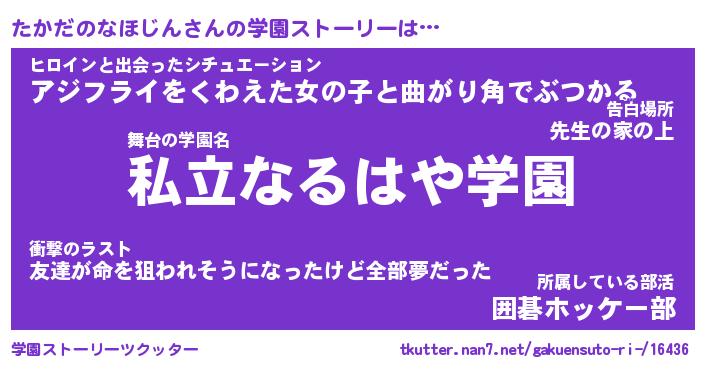 | 告白場所 先生の家の上 …「ふぃぎゅこ」 | 2月17日 06:24 |