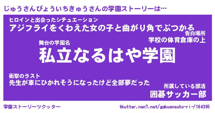 | 告白場所 先生の家の上 …「ふぃぎゅこ」 | 2月17日 06:24 |