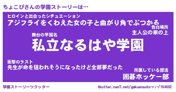 | 告白場所 先生の家の上 …「ふぃぎゅこ」 | 2月17日 06:24 |