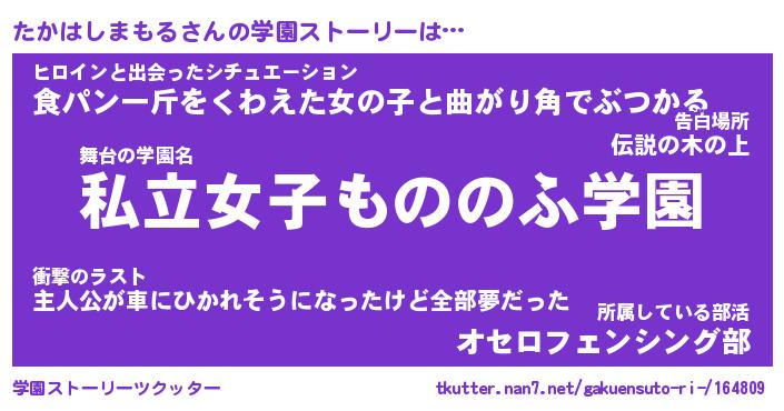 | 女子向けラノベタイトル風あだ名 | 『誰かこのたかはしまもるを説明してください! ~契約から始まるウェディング~』 |