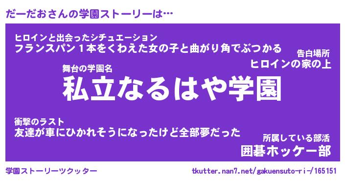 | 伝説のあだ名 | 『伝説のスナイパーだーだお』 |