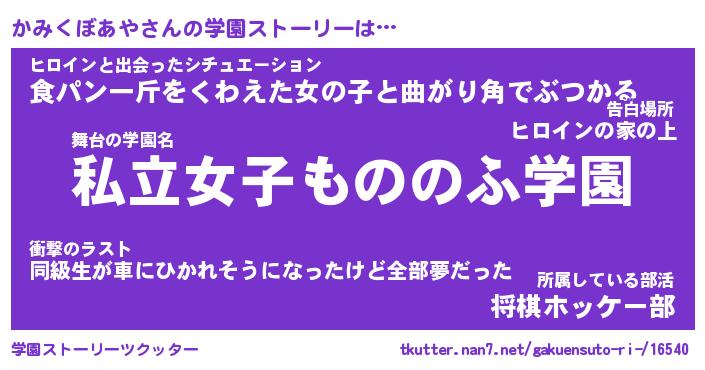 | 女子向けラノベタイトル風あだ名 | 『かみくぼあや姫と円卓の騎士』 |
