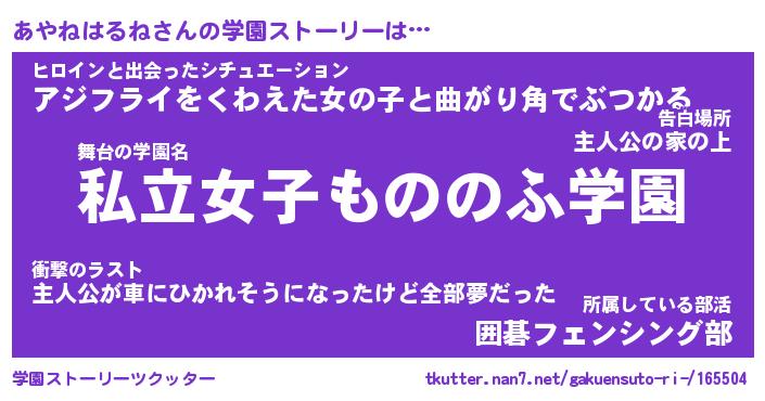 | ヒーロー風カッコイイあだ名 | 『スーパーアヤネハルネ』『幻影騎士アヤ』 |