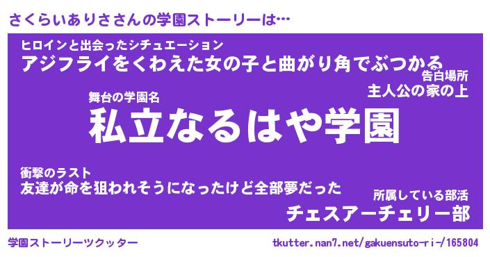 | 女子向けラノベタイトル風あだ名 | 『(仮)さくらいありさのやんごとなき事情』 |