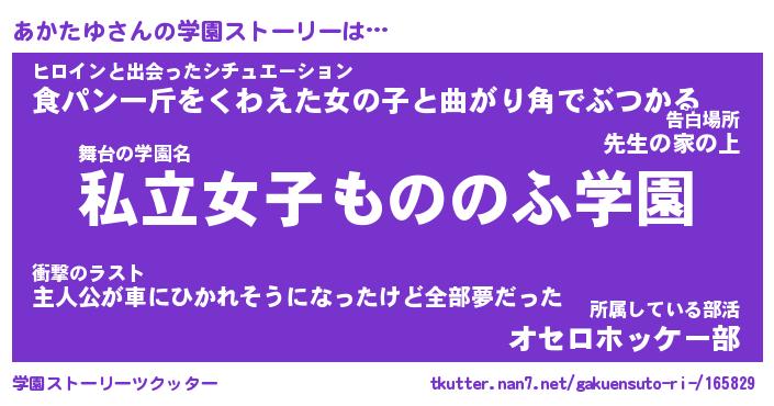 | ヘコむあだ名 | 『あかにゅー』『牛乳』『あかぷりん』 |