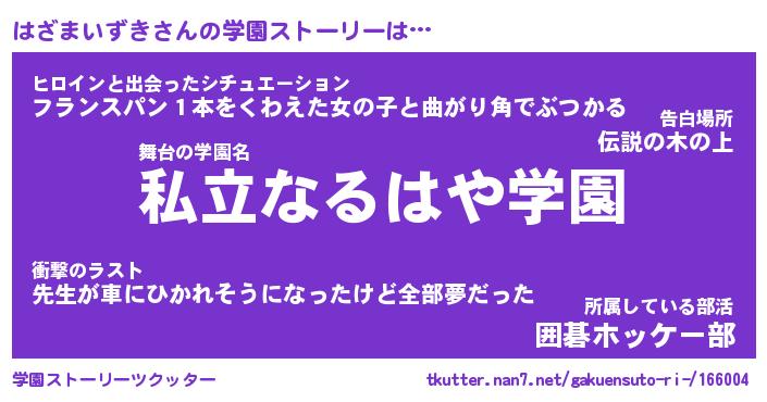 | ヘコむあだ名 | 『はざもー』『なまこ酢』『はざを』 |