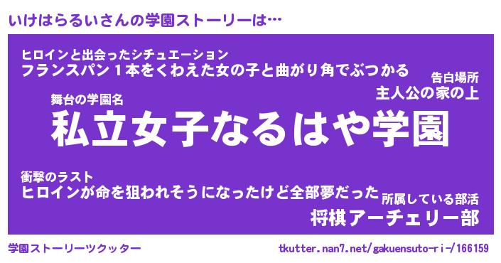 | 伝説のあだ名 | 『封印されしスナイパーいけはらるい』 |