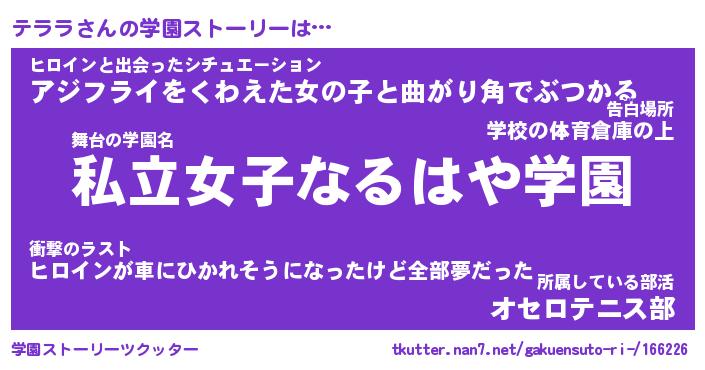 | 女子向けラノベタイトル風あだ名 | 『テララ姫と円卓の騎士』『テララ恋絵巻』 |