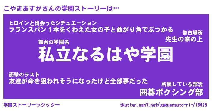 | ヒーロー風カッコイイあだ名 | 『スーパーコヤマアスカ』『炎刃騎士コヤ』 |