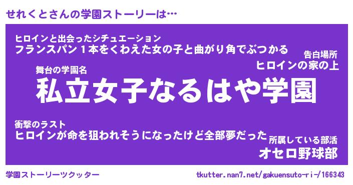 | 意味不明あだ名 | 『ペロリンせれくと』『永久保存せれくと』 |