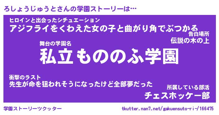 | 学校 | ろしょうじゅうと校長が勤める学校の名前『都立絶頂高校』 |