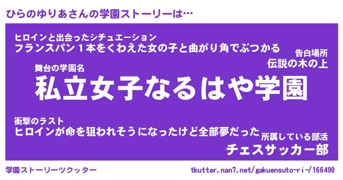 | ヒーロー風カッコイイあだ名 | 『スーパーヒラノユリア』『炎刃騎士ヒラ』 |