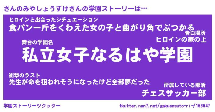 | 伝説のあだ名 | 『封印されしスナイパーさんのみやしょうすけ』 |