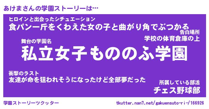 | ファンタジー風あだ名 | 『アケフェル』『エターナルアケマー』 |