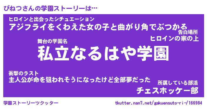 | 男性向けラノベタイトル風あだ名 | 『びねつの憂鬱』 |
