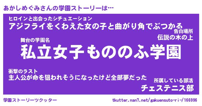| ヒーロー風カッコイイあだ名 | 『スーパーアカシメグミ』『魔戒騎士アカ』 |