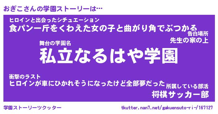 | 告白場所 先生の家の上 …「ふぃぎゅこ」 | 2月17日 06:24 |